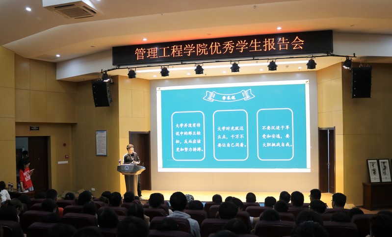 为积极配合学院学风建设系列活动,让新生尽快熟悉大学校园、适应大学生活,对大学生涯有更清晰的规划,9月5日,管理工程学院举办优秀学生代表交流报告会。活动邀请工商162班王子璇、工商162班梁匆、物流161班苏卫、工业161班汪乐、工业161班陈振权五位学长学姐为新生分享大学学习、生活、工作经验。
