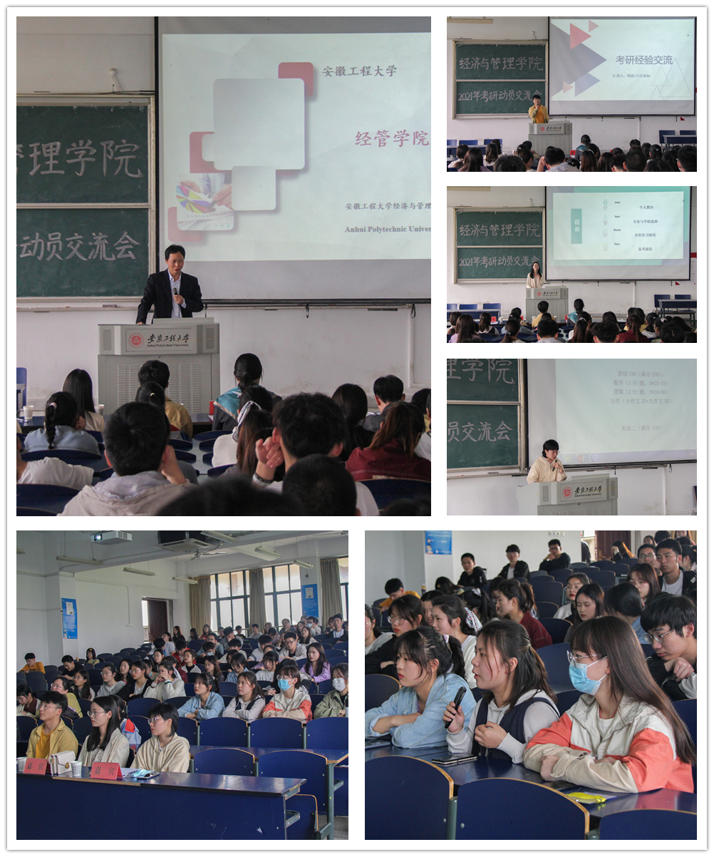为了让广大同学对考研有更深入的了解,帮助同学们及时解决和处理在考研中遇到的各种困难和问题,坚定正确的奋斗方向,端正考研态度,打好坚实的基础,经济与管理学院于2021年4月28日下午在5教217举办了考研交流会,大一大二大三有志考研的学生参加了交流会。学院副院长蔡书凯教授,院团委副书记赵恒梅出席了本次活动,会议还邀请物流171任标标、营销171程倩倩、工业171陈明双三位考研成功的学长学姐与同学交流。