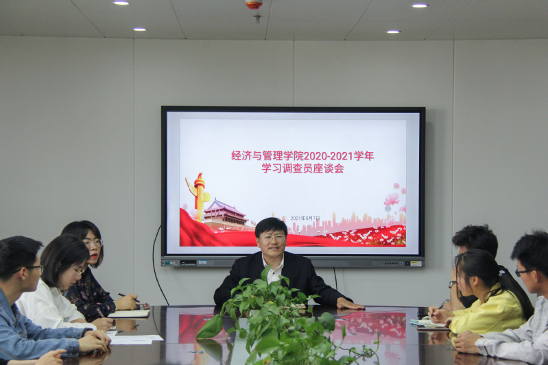 为了加强师生之间的沟通交流,提高学院课堂管理能力,经济与管理学院于2021年5月7日下午,在C座818举办学习效果调查员座谈会。谢荣见副院长、李晓蕊老师、赵妍老师参加本次座谈会为学生解答学生关注的问题,各专业班级的学习调查员参加了会议。