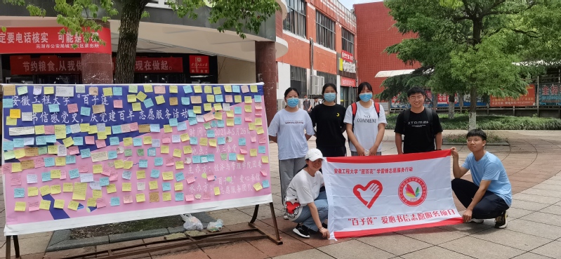 活动于2021年5月26日下午6J205开始,共有500多名同学参与了本次活动。“百子莲”爱心书信志愿服务团队提前为同学们准备好便签和笔,由同学们在现场写下对党的祝福和感谢。在收集完成参与同学的便签之后,“百子莲”团队于5月27日在三食堂前,将同学们写好的便签统一粘贴在展览板上,进一步加深了同学们知史爱党、知史爱国的思想意识。