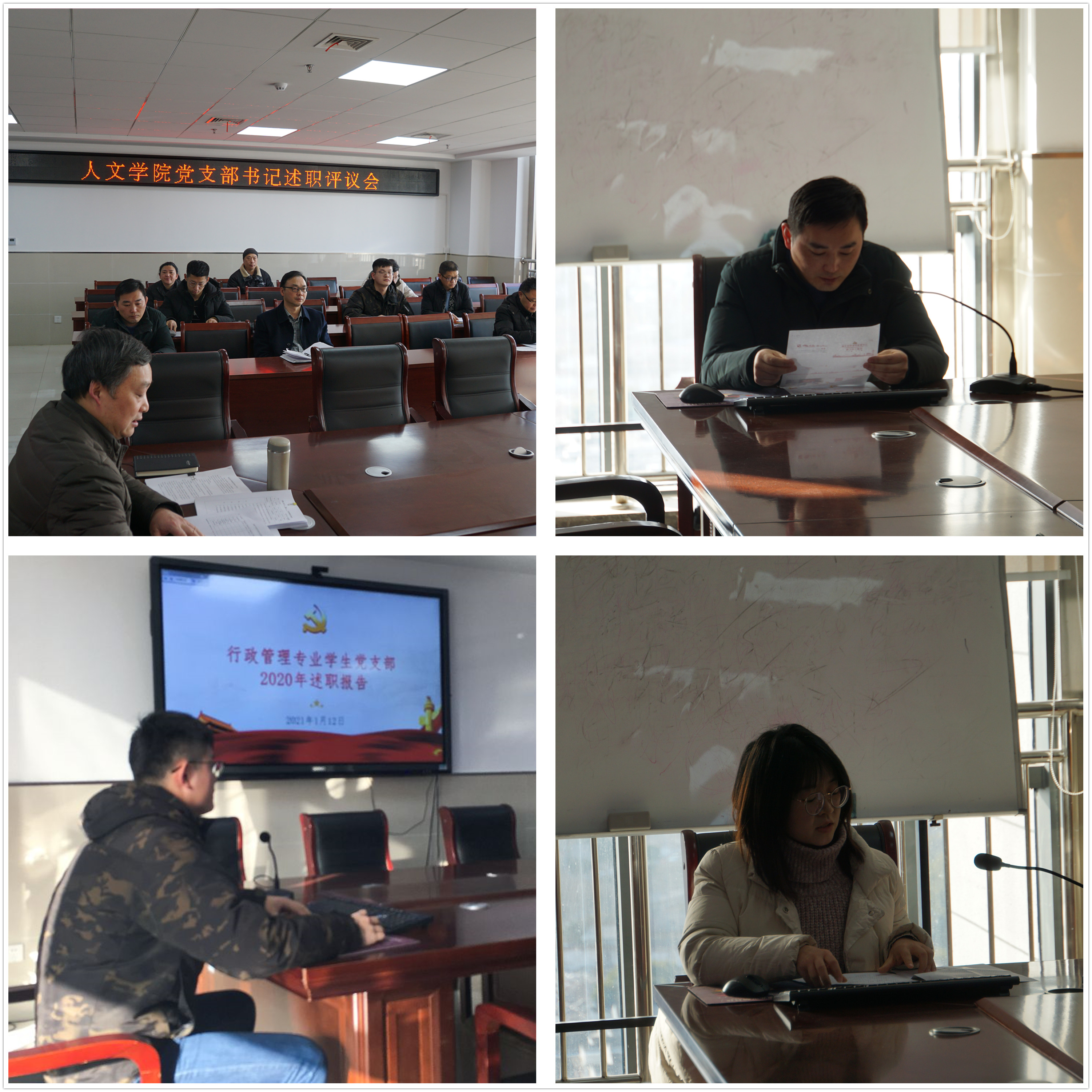 为深入学习贯彻习近平新时代中国特色社会主义思想和党的十九大、十九届一中、二中、三中、四中、五中全会精神,推动全面从严治党向基层延伸,促进基层党组织标准化建设,2021年1月12日下午,学院党委在1307会议室召开院2020年度党支部书记党建述职评议会。学院党委委员、办公室主任、组织员、科以上干部、党支部书记、师生代表等参加了述职评议会。会议由院党委书记邓英扣主持。
