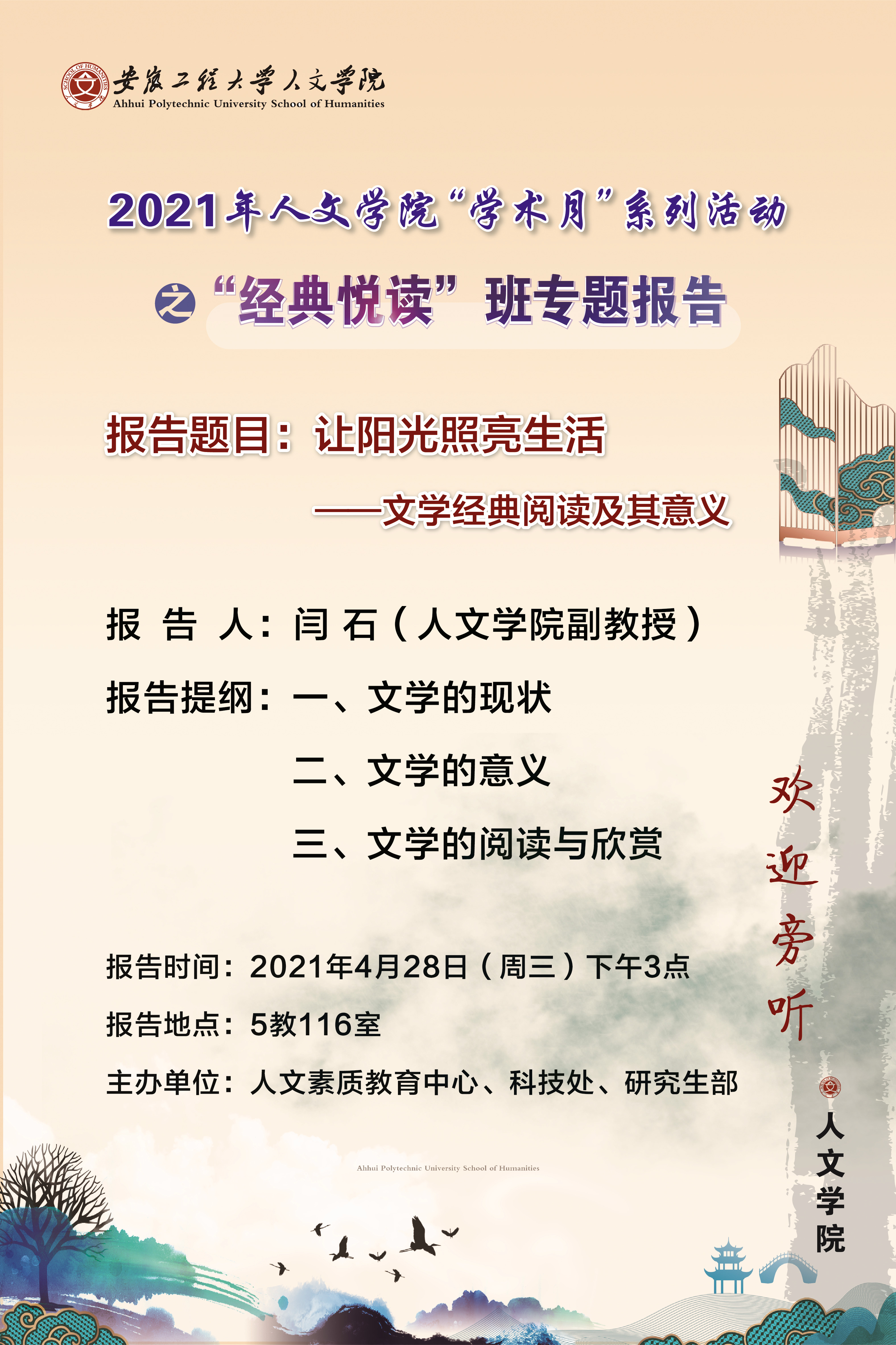 2021年人文学院“学术月”系列活动之“经典阅读”班专题报告(二)