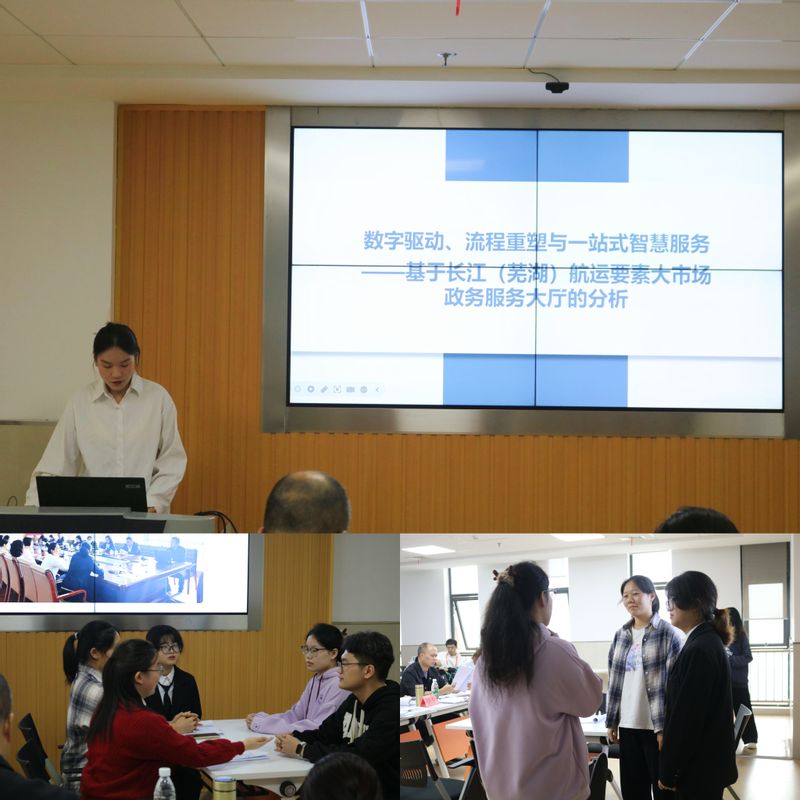 比赛分为论文评审和现场汇报两个环节。各支队伍围绕“数智赋能基层治理现代化”的主题开展调查研究、撰写并提交学术论文。比赛现场,评委老师认真审阅论文,各小组通过PPT汇报、情景演绎等多种形式展现研究内容。评委老师根据论文和展示提问,提出改进建议,活动现场气氛热烈。现场汇报结束后,评委老师进行评议并打分,校内选拔赛圆满结束。