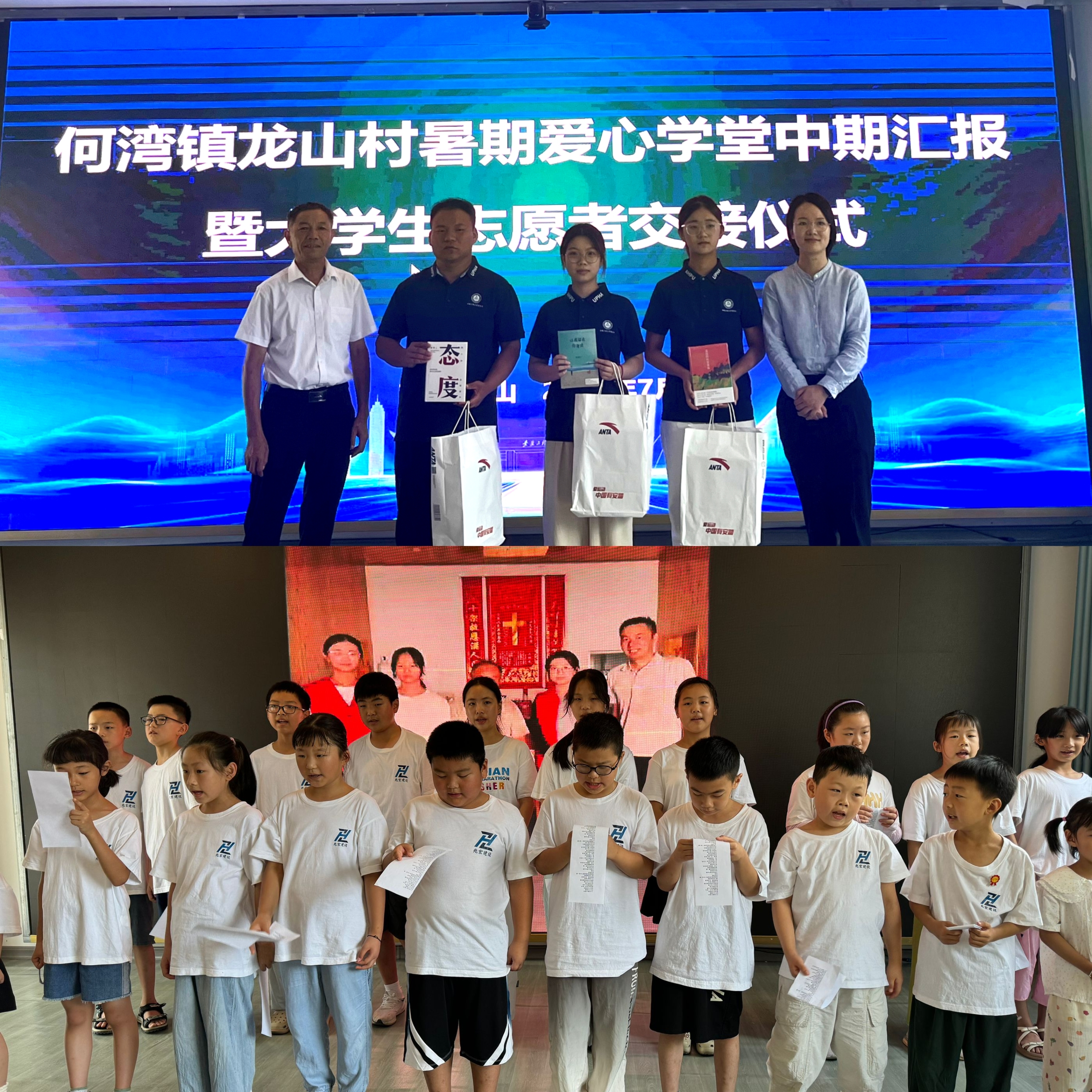 在“暑期爱心学堂”中期汇报暨大学生志愿者交接仪式上,调研团第一批成员分享了与孩子们相处一个月的支教故事和自己的收获。一位学生家长紧紧握住调研团成员的手说道:“老师,你们真好,孩子都不舍得你们离开。”现场充满了依依不舍之情。725日至88日,调研团第二批成员将接续支教,助力龙山村的留守儿童度过一个安全、快乐、有意义的暑期。