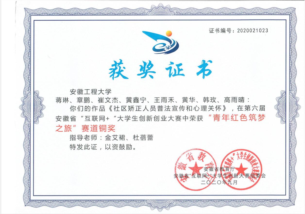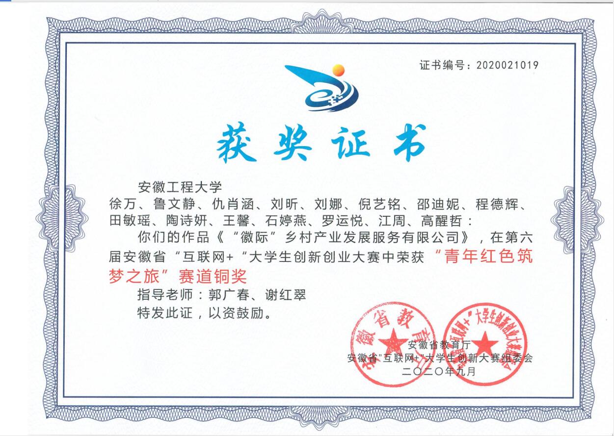 2018年获第四届安徽省“互联网”创新创业大赛青年红色筑梦之旅铜奖