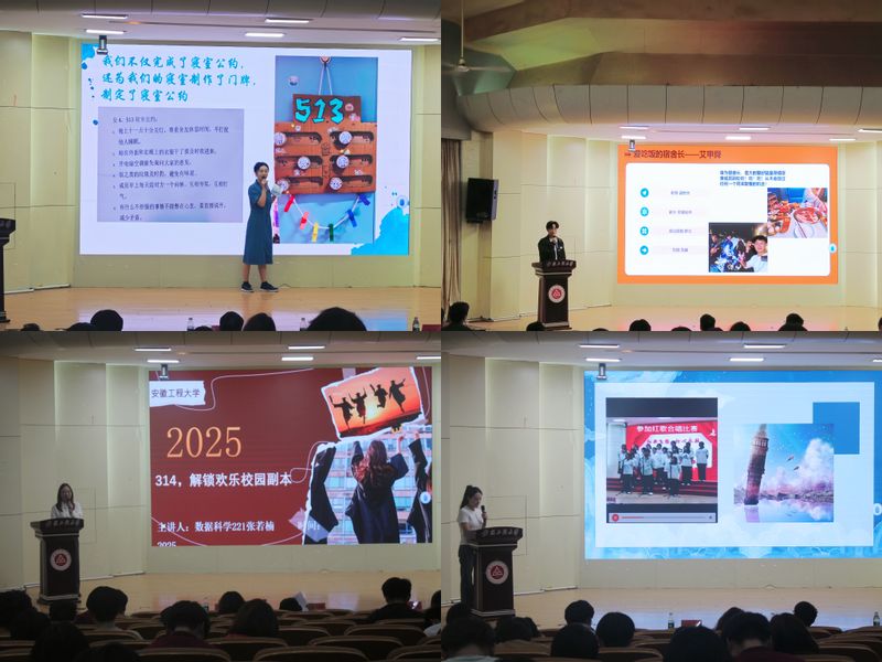 参赛选手从宿舍文明创建、劳动教育、心理健康、学风建设、社会实践等多个维度展现良好的宿舍精神风貌,深情分享“我们的宿舍故事”。统计243班罗敏娜讲述了宿舍成员齐心协力装扮宿舍、制定宿舍公约、设计宿舍门牌的经历;行管242班程子翔以视频串烧的形式全面展现了宿舍成员的性格特征,以“宿舍拍大片”的形式展现了宿舍的风趣日常;区块链241班章鸣展示了宿舍成员参加学科竞赛、生活技能小课堂、手工艺品制作的精彩瞬间;计算机242班张思涵则围绕宿舍成员参加志愿服务、社会实践经历展开,讲述了让人难忘的故事。