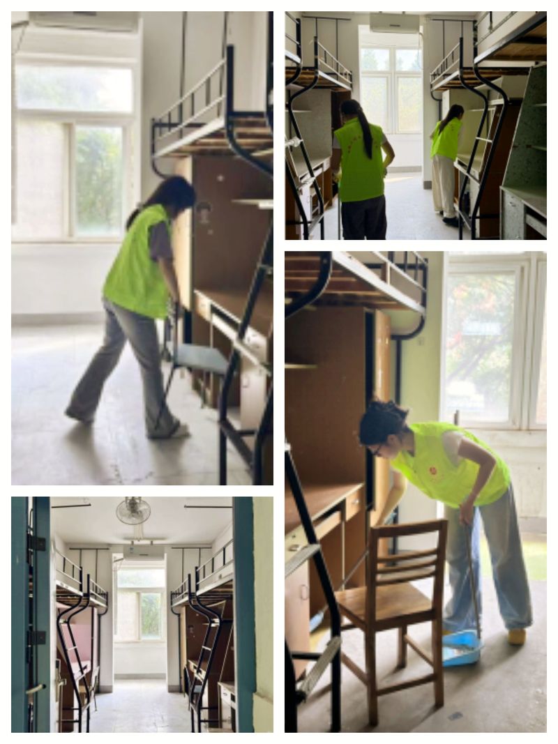 活动前,党支部对新生寝室情况进行了摸排,依据寝室数量和具体状况制定分工方案,将参与人员分成 3个小组,负责宿舍地面清扫、门窗擦拭、卫生间清洁、杂物整理和再次排查安全隐患。志愿者们提前备好抹布、水桶、清洁剂、扫帚等工具,活动过程中,志愿者们充分发扬“不怕脏、不怕累”的奉献精神,按照“从内到外、从上到下”的清洁原则有序推进工作。