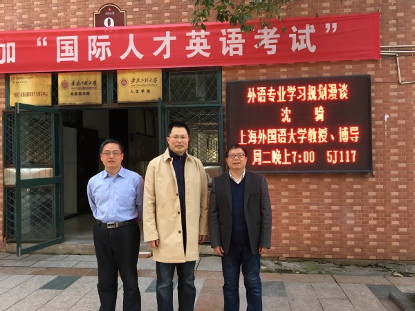 3月13日晚7时,上海外国语大学语言研究院专职研究员、博士生导师沈骑教授于5教117为我校师生做了题为“外语专业学习规划漫谈”的学术报告。报告会由外国语学院副院长黄焰结教授主持,外国语学院部分师生和其他相关专业本科生聆听了本次报告。
