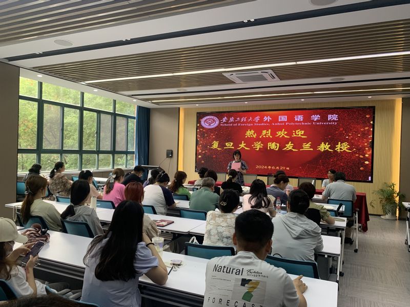 2024年6月21日下午,外国语学院邀请了复旦大学陶友兰教授做了题为“知行合一,译思并举:人工智能时代的翻译项目案例教学”的讲座。讲座由外国语学院副院长(主持工作)唐雪梅教授主持,外国语学院全体教师、部分研究生及本科生参加了讲座。